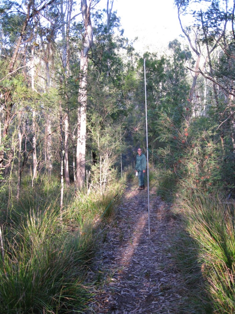 A grid of narrow trails and tracks was established across the site. The main grid is a 50 x 50 metre matrix, which includes a narrow vehicle track. That grid is divided again with very narrow paths every 25 metres. This matrix of trails allowed Stephen, and then Michael and Sarah, to traverse the block in sections as they looked for and mapped every nest they could find. Some of the trails would over grow quickly and required a bit of maintenance. Importantly, the trails did not create an edge effect, that is there was little change in the structure of the various habitats on the site.
