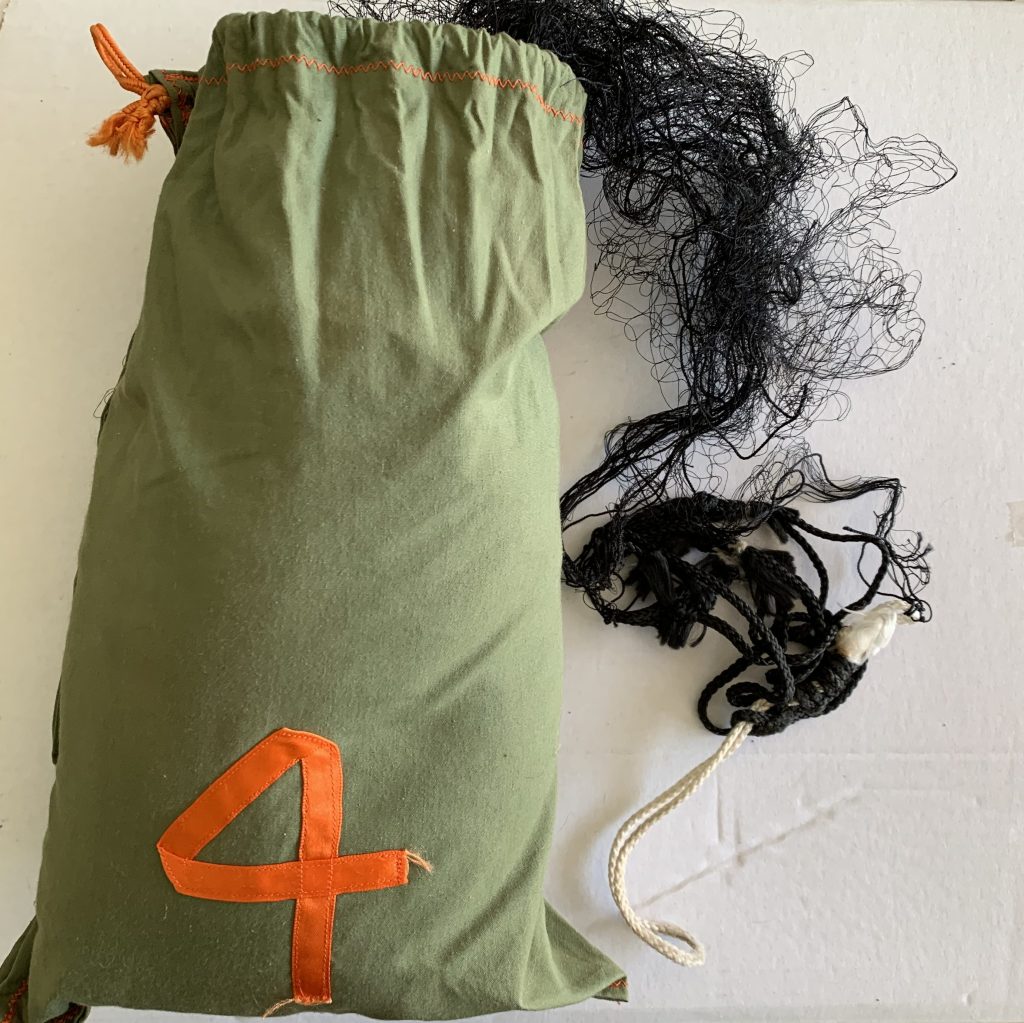 - Enough guy ropes (made out of venetian blind cord) and tent pegs for the number of nets, plus a mallet, in another old backpack.