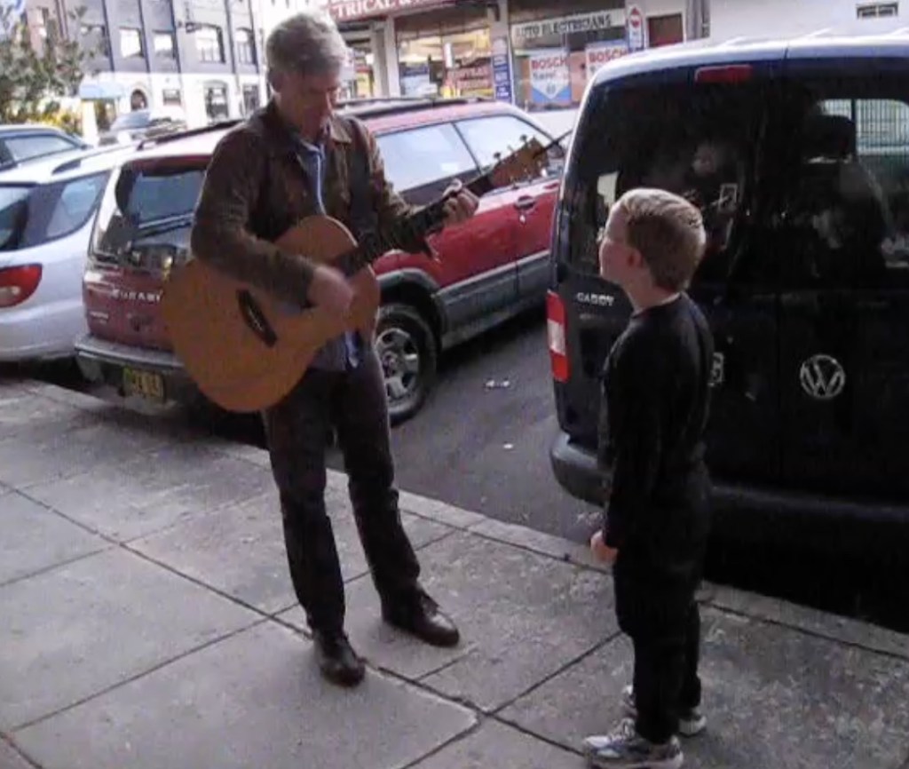 I wrote a blog post about our experience seeing Nada Surf play in Sydney. I recently dug out the video of Matthew playing a song for Elliott outside the Annandale Hotel, a still of which is below. Glorious musical memories for us all.