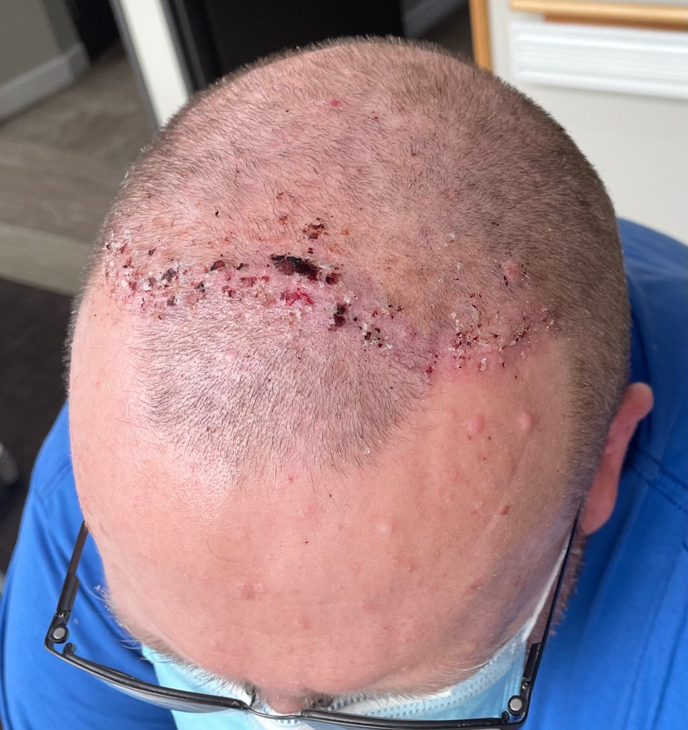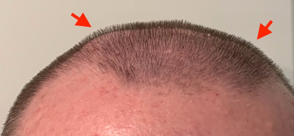 I certainly do now have a couple of small lumps on the top of my head. These were created by the attachment of the capping device (burr hole cover) in each drill hole to secure the placement of the inserted leads. I affectionately call these lumps my horns, and I tell people I grind the horns down with an angle grinder, as Hellboy does! It was so hard to take a photo of something that looks and feels so prominent yet doesn’t really look that enormous.