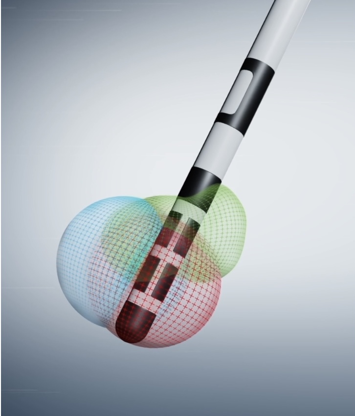 Below is a graphical representation of the lead that was put into each side of my brain. The lead can emit signals from multiple locations, in different directions, at different frequencies and power levels. The DBS team has used multiple generations of directional leads. Other leads simply direct the signal omnidirectionally, perhaps like turning on a torch in the dark.